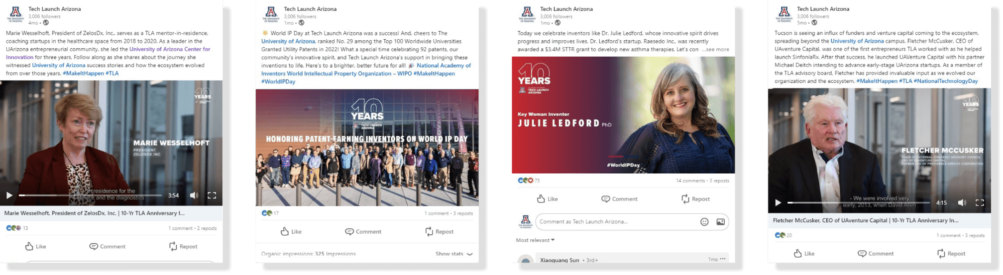 Graphic design that matches the overall University’s branding is pivotal to Tech Launch Arizona’s communications. Beyond portraying the entity’s values, we collaborate with TLA leadership to align powerful stories that that engage stakeholders and the broader community.